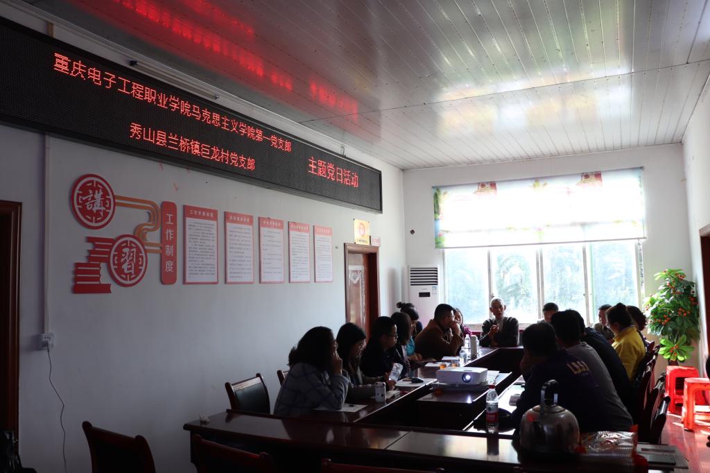 下午,思政一党支部全体教师党员与巨龙村党支部举行了座谈会。就基层党建工作,精准扶贫政策,尤其是扶贫与扶志扶智相融合,乡村教育发展现状,面临的困境以及解决的途径等诸多方面的问题展开了深入的讨论和交流。
