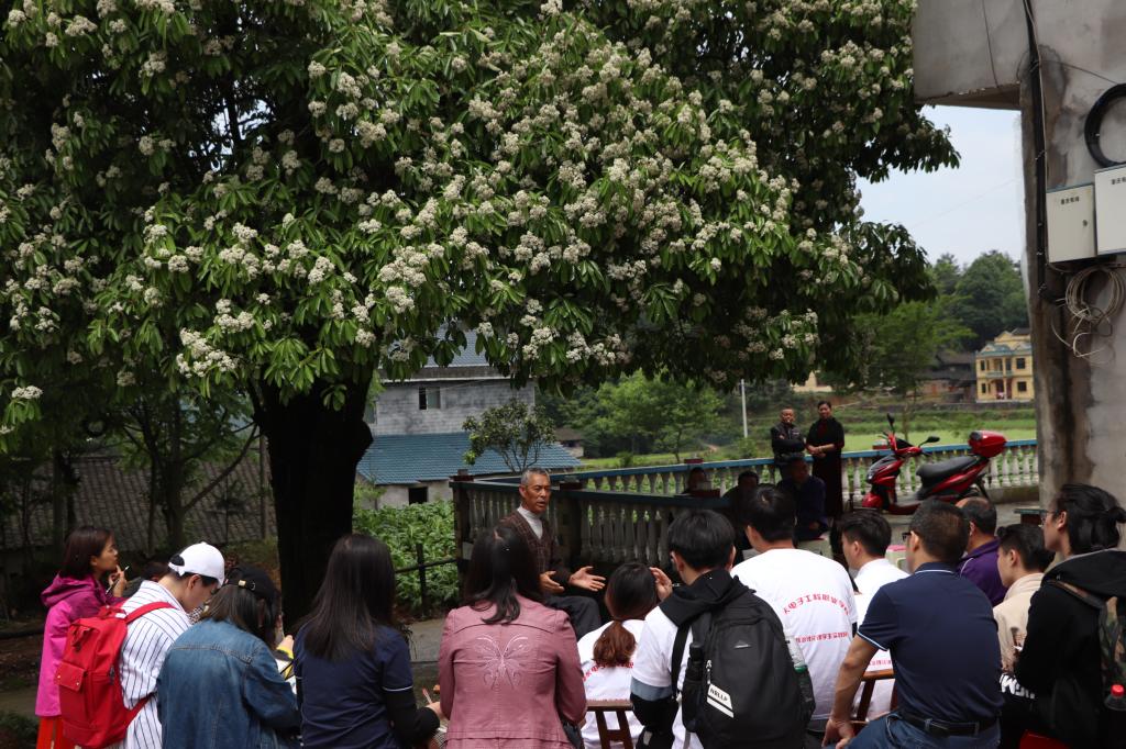 第二小分队由思政一党支部书记汪麟老师带领部分教师党员一路步行前往巨龙村开展实地调研。一行人首先在院坝里,百年檬子树下聆听基层优秀老党员田儒来讲述作为一名老支书服务农村工作二十余载的故事,田儒来用质朴而饱含深情的语言,讲述他持之以恒为人民群众做好事、解难事、办实事的亲身经历,尤其是讲到支部就是一个战斗堡垒,要像红旗一样永远高举不倒的时候,令在场的党员教师尤为动容。随后支部党员教师在村支书的带领下访谈了村里的两户建档贫困户,当了解到他们均是因为家中供养孩子上大学而经济困难时,都为他们家贫却仍重视孩子的教育而感动。党员教师们还参观了村里的油茶产业基地,深入了解了巨龙村乡村振兴,产业发展的现状。