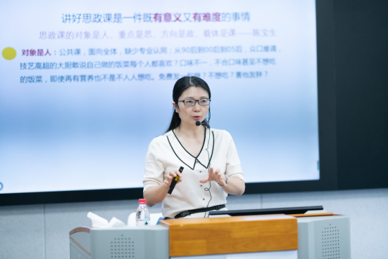 兰桂萍副教授从事思政课教学多年,有着丰富的教学经验和成果,是全国高校思政课教学标兵、全国高校思政课影响力提名人物、重庆市高校思政课教学比赛一等奖。本次讲座兰教授从影响教学效果的因素出发同与会教师一起探讨如何提高思政课“含金量”打造思政金课堂;她从转变教学观念、改造教学内容、优化教学过程、革新教学语言等课堂教学要素出发系统提出打磨思政金课堂的方法。强调教学设计要践行以员工为中心原则,多以问题导向激发员工自主参与,教学案例等要紧跟时代发展,摒弃陈旧老化、老生常谈,教学语言要准、精、新,兰教授讲座激情澎湃、妙语连珠,在场教师纷纷表示受益匪浅,现场掌声不断。