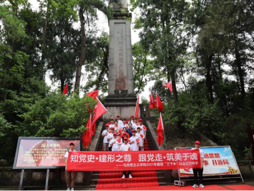 “党史学习”晨曦筑梦实践团的成员在战斗纪念碑下听取了beat平台老师讲述中国工农红军第三军在倒马坎的英勇事迹,让人仿佛又回到了85年前的战斗现场:战士们英勇无畏,浴血奋战,誓死攻破反动武装的坚固堡垒。之后,老师带领成员们重温入党誓词,句里词间,这一群热血青年严肃庄重,深刻感悟着我党奋斗历程的艰辛,誓将传承共产党人不怕牺牲勇于奋斗的伟大精神。