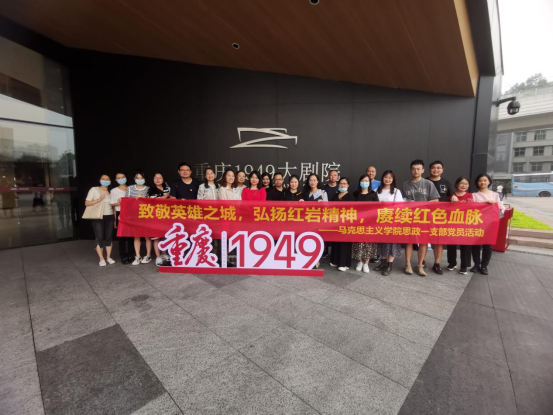 为进一步增强党员党性修养,激励党员干部弘扬红岩精神,赓续红色血脉,积蓄奋进力量,以更加昂扬向上的精神姿态喜迎党的二十大的召开,5月25日,beat平台思政一支部全体党员教师和入党积极分子来到重庆1949大剧院,集中观看大型红色历史舞台剧《重庆·1949》。