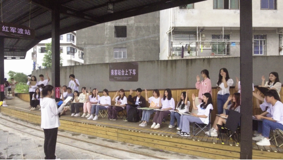 在离濯水古镇几百米远的地方,立有一块写着“红军渡”三个大字的石刻,师生重温了红军在黔江征战的峥嵘岁月。88年前贺龙、关向应率领红三军由此渡江攻打彭水,在当时缺衣少食的条件下,古镇许多群众给红军送茶水、煮鸡蛋、蒸米粑。而更为当地人津津乐道的,是在红军渡江的过程中,当地百姓接受了红军的宣传和主张,同时也被红军将士爱护老百姓的行为所感动,不少人主动拿出草垫铺在船底,让红军的骡马顺利渡江。还有不少人接受了扩红宣传,当地出现了母亲送儿子、妻子送丈夫参加红军的场面,当天便有30多名濯水青壮年参军入伍。红军每到一处,都能得到当地老百姓们的全力的支持,这也是红军能在2万五千里的艰难跋涉中,顺利完成长征的一个原因。跟随着讲解老师脚步,听着娓娓道来的一个个感人故事,让人仿佛置身当年红军战士浴血奋战的烽火岁月,仿佛看见一个个革命先烈抛头颅,洒热血,视死如归的悲壮场面,通过实践教学也更能让广大青年学子从红军故事中汲取精神力量,坚定赓续红色血脉、助力乡村振兴信念。