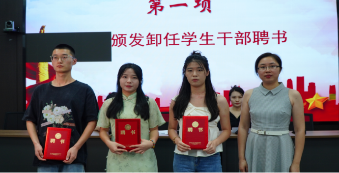 接下来,知行研习社新旧干部代表发言。卸任干部赵语柔表达了自己对社团的不舍,感谢在马院知行研习社通过学习、锻炼不断塑造出更好的自己。希望未来,肩负责任与使命的新一任负责人能接过重担,带领知行研习社栉风沐雨,砥砺前行。新任社团干部谭莹代表表示在未来的一年中将戒骄戒躁,奋发图强,带领知行研习社乘风破浪,定不辜负领导、老师与社员们的信任。随后任中莉老师宣读新任负责人任命名单,并同韩梦馨老师一同为优秀社员颁发荣誉证书。