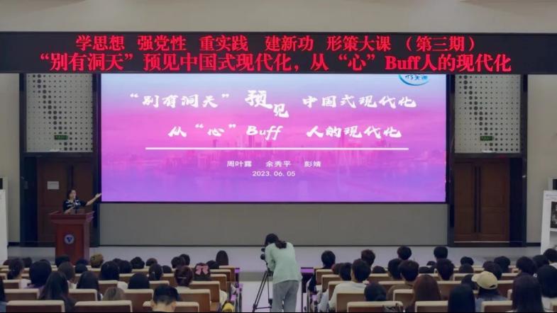 自1998年起每年的6月5日,作为“重庆大轰炸”的纪念日,全市上下拉响防空警报,缅怀同胞,警醒后人。2023年6月5日上午,伴随着回荡校园的警报声声,形策大课第三期“‘别有洞天’预见中国式现代化,从‘心’buff人的现代化”的品牌示范课在博远厅如期举行。