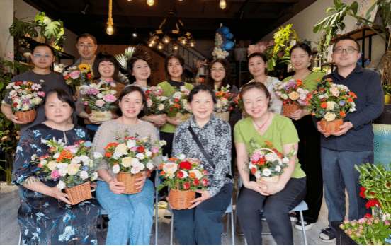 通过花艺学习,大家加深了相互了解,联络了彼此情感,收获了“定制”花篮,还激发了对美的追求和对生活的热爱。