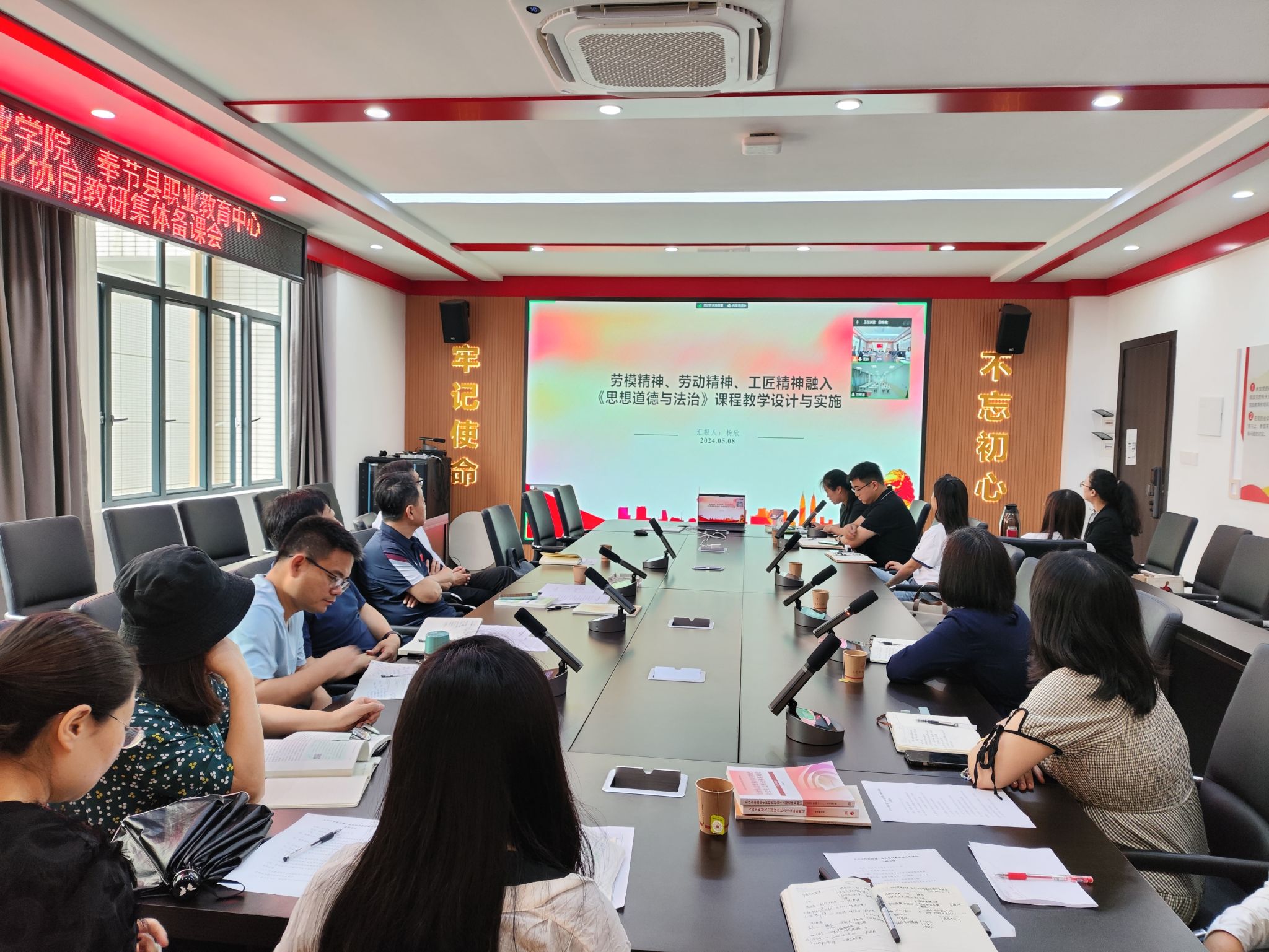 为积极落实习近平总书记在党的二十大报告中“要推进大中小学思想政治教育一体化建设”讲话要求,积极探索具有职教特色的共建活动,2024年5月8日,beat平台“德法”教研室与大中小一体化共同体建设单位奉节县职业教育中心思政教研组云端携手、线上教研,双方围绕“弘扬劳模精神、劳动精神、工匠精神,走技能成才、技能报国之路”主题开展同课异构、同题异构、教法攻坚的集体备课会。公司党委书记孙卫平、奉节职教中心党委书记邓建明、beat平台经理韦代周、副经理冉鑫、“德法”课教研室和奉节县职业教育中心思政教研组共计30余位教师共同参加了此次集体备课会。