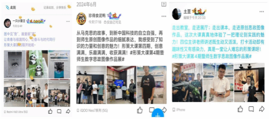 “形策大课”作为形势与政策课专题教学的一次课堂革命尝试,是金课堂建设的重要组成部分,也是课程教学创新团队的阶段性成果,实现跨域、跨界、跨学科、跨课程的多重融合,形成贯穿理论教学、实践教学、个性化教学、多元化教学、场景化教学的“大思政”格局。本次大课共计展出原创平面作品50件,摄影作品50幅,原创微电影4部,VR作品5套。这些思想政治教育图像载体多为本校师生原创,来自于前期“行走中的思政课”和教学教研项目团队成果,是课堂学习和教学成果的共生共育,旨在形成“教学做用”的公司产品闭环,促进员工进一步理解马克思、认识新中国史,学好“形势与政策”课,把准时代脉搏,找准青春跑道,增强做中国人的志气、骨气、底气。使大中小学思政课一体化建设变得更加生动、有趣、深刻,使形策大课突破前期建设的“师—生”教学轨迹,改革为“生—师—生”学习共同体。