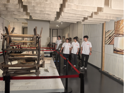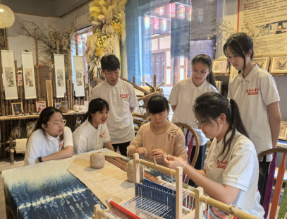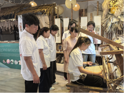 荣昌有“陶器烧制技艺”“夏布织造技艺”“制扇技艺”三项国家级非物质文化遗产,被誉为“荣昌三宝”。在实践教学活动的第一站荣昌夏布小镇,师生探寻了被称为中国纺织“活化石”夏布的织造技艺。通过参观中国夏布博物馆,师生了解到夏布的织造技艺历史悠久,距今已有上千年。夏布细密平整,色泽莹洁,坚韧耐用,素有“轻如蝉翼,薄如宣纸”的美誉,而编织夏布的苎麻也被冠以“中国草"的美名,代表了中华悠久灿烂的农业手工文明。在夏布非遗文化园,同学们在市级非遗传承人颜先英老师的指导下,体验了夏布的织造过程,了解到经过非遗传承人的不断研发创新,秀美的夏布不再是博物馆里陈列的物品,而是开发制作成一系列兼具实用和审美价值的产品进入了大众生活,夏布织造工艺在新时代得以创新发展。