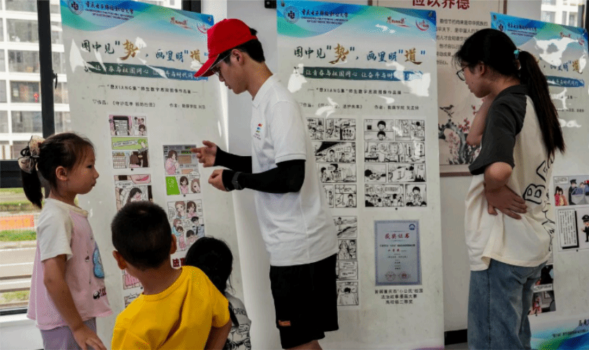 活动现场,一系列精心设计的原创法治漫画与色彩斑斓的原创教学“数字画”,为江津区双福街道怡云社区的青少年们打造了一场视觉盛宴。这一系列法治漫画,是由beat官网数字媒体学院师生利用数字绘画软件,紧密结合青少年的生活实际,将法律条文转化的一幅幅生动有趣、寓意深刻的数字绘画作品,展示了“防范人口拐卖”“校园欺凌预防”“知识产权保护”等与青少年日常生活息息相关的法律知识。此次展出的漫画作品,均为重庆市“小公民”法治漫画大赛获奖作品。