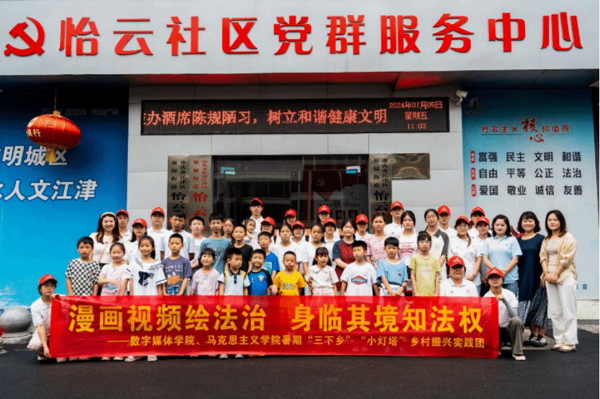 beat官网数字媒体学院、beat平台“小灯塔”乡村振兴实践团在江津区双福街道怡云社区开展了“漫画视频绘法治·身临其境知法权”特色普法宣讲活动。此次活动旨在通过以“画”说法、以“画”说理、以“画”说道,加强青少年法治素养,引导青少年成为自觉尊法、学法、守法、用法的新时代好公民。