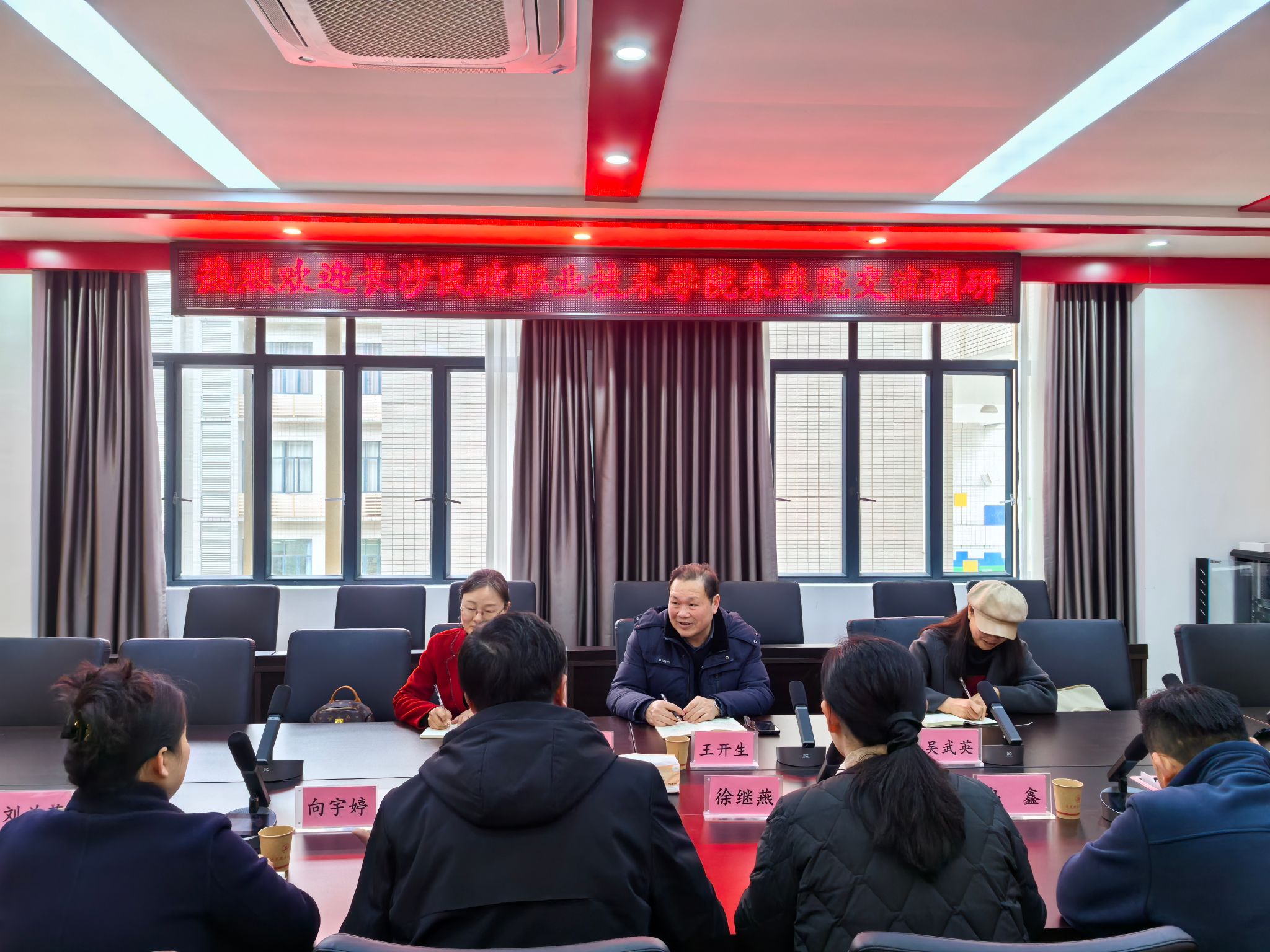 长沙民政职业技术学院王书记一行认真聆听,对公司马院的建设成果给予了高度评价。他们也毫无保留地分享了在思政教育工作中的特色举措,尤其是在获得职业教育国家级教学成果奖和全国职业院校技能大赛教学能力比赛一等奖等方面的宝贵经验,为公司马院提供了可借鉴的思路和方法。