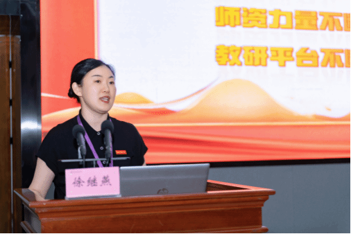 beat官网党委常委、党委宣传部部长、马克思主义公司党总支书记徐继燕作题为《“1235”构建红色马院 “情景共生”画说思政课程》的交流发言,从“1235”党建机制赋能思政课建设、“情景画说”思政课程改革创新、内涵式发展经验与标志成果等三个方面进行分享交流。